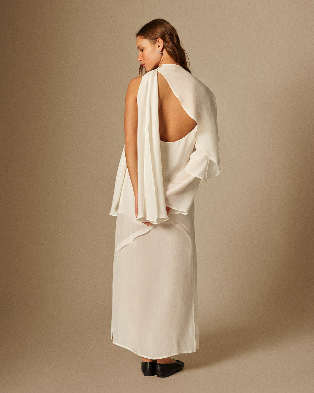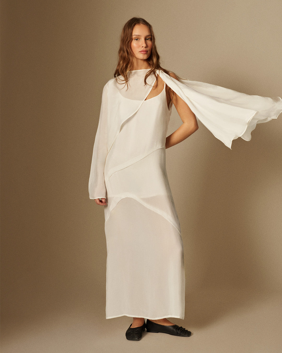 This regular, asymmetric-cut dress is the embodiment of pure and understated beauty. Its layered design, adjustable straps, and side slit provide comfort and ease. The lightweight, soft vegan fabric ensures a fresh and comfortable feel throughout the day. With its elegant design, it effortlessly draws attention in any setting.